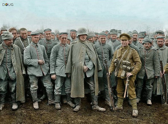 German prisoners captured by the 1st Northumberland Fusiliers, 3rd Division, and the 4th Royal Fusiliers in the attack on St-Éloi, 27th of March 1916. The British aims at the Treaty of Versailles was to avoid provoking a defeated Germany into seeking revenge in the future.