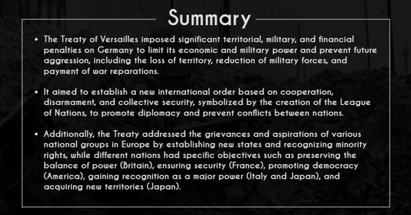 Furthermore, the Treaty aimed to address the grievances and aspirations of various national groups in Europe, including the establishment of new states such as Czechoslovakia and the recognition of the rights of minority groups.