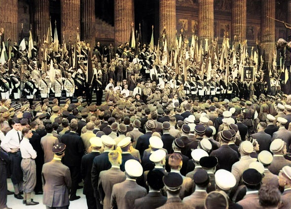 Massive rally protesting the terms of the Treaty of Versailles, Berlin, 1932.