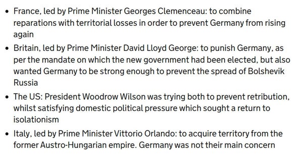 The Treaty of Versailles was an effort by the Allies to reduce German armaments. But it also reflected divergent national agendas.