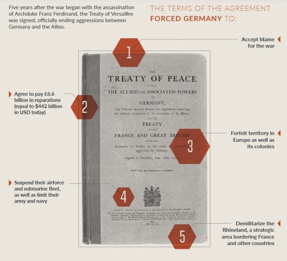 The Treaty of Versailles imposed significant financial reparations on Germany as a punishment for its role in the First World War.