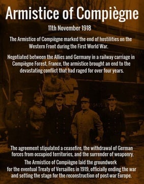 A British news placard announcing the signing of the peace treaty which signified the official end of the First World War.